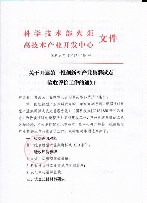 關于開展第一批創新型產業集群試點驗收評價工作的通知