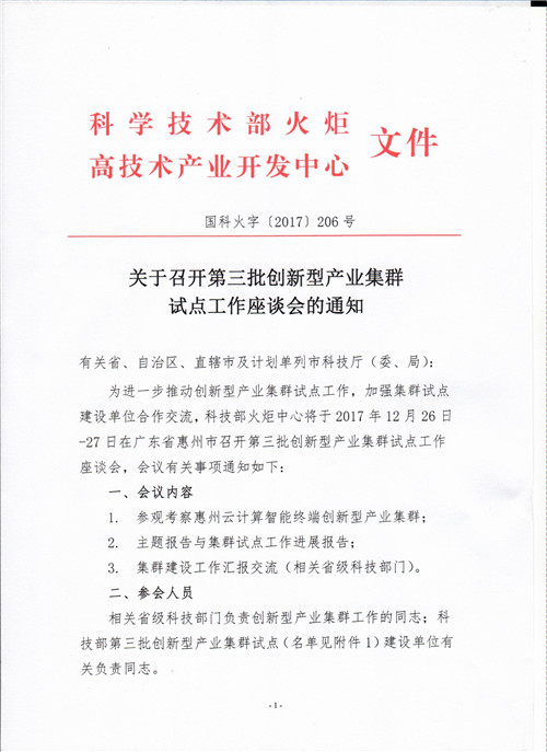 關于召開第三批創新型產業集群試點工作座談會的通知