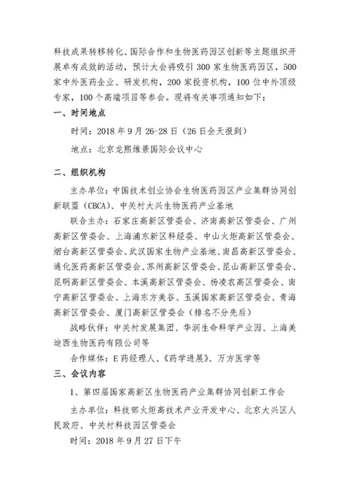 關(guān)于舉辦“2018中國(guó)生物醫(yī)藥產(chǎn)業(yè)高質(zhì)量發(fā)展論壇暨中國(guó)醫(yī)藥健康創(chuàng)新創(chuàng)業(yè)直通車項(xiàng)目路演”活動(dòng)的通知