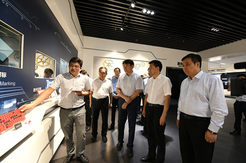 2018年9月11日,陜西省副省長、寶雞市委書記徐啟方(右2)陜西省委科技工委書記、科技廳廳長趙巖(右3)深入激光加工國家工程研究中心西北區域中心調研