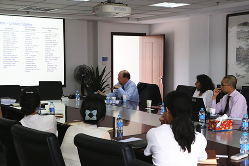 2015年8月14日,世界銀行項目組成員世界銀行總部經濟學家Justin Hill 先生,Smita Kuriakose女士再次訪問火炬中心,就合作經濟調研項目“基于國內外科技工業園區比較研究,探討科技支撐經濟發展有效途徑”研究進展情況進行交流?;鹁嬷行挠嘘P處室參加了會談。