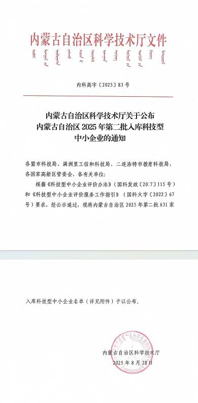 內蒙古自治區2025年第2批入庫科技型中小企業名單公告正文.jpg PICTURE