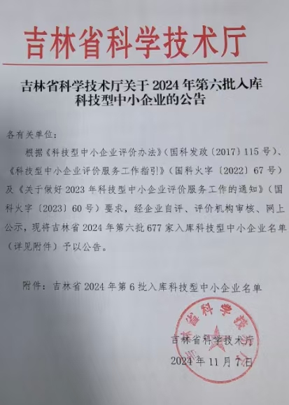 吉林省2024年第6批入庫科技型中小企業名單公告正文.jpg PICTURE