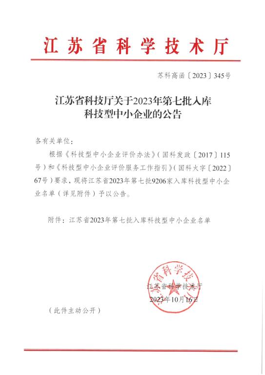 江蘇省2023年第7批入庫科技型中小企業名單公告正文.jpg PICTURE