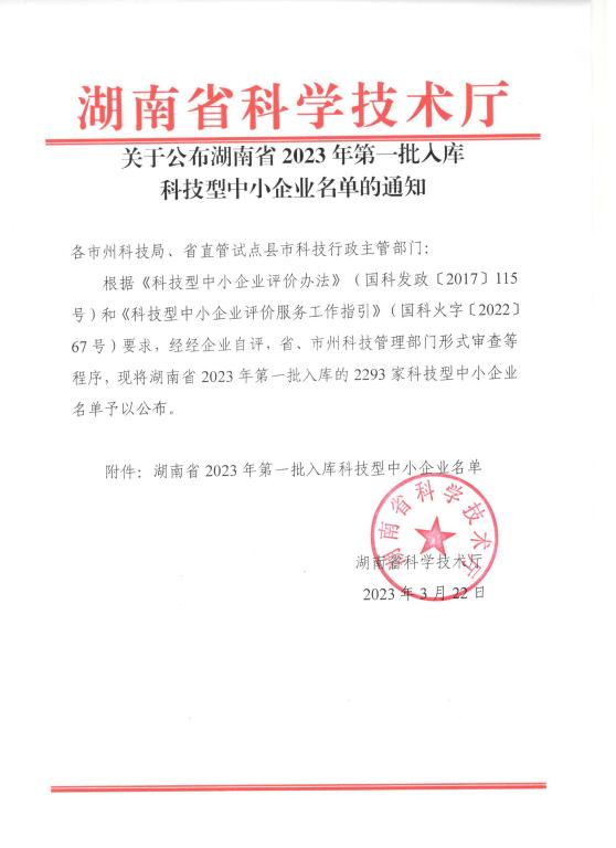 湖南省2023年第1批入庫科技型中小企業名單公告正文.jpg PICTURE