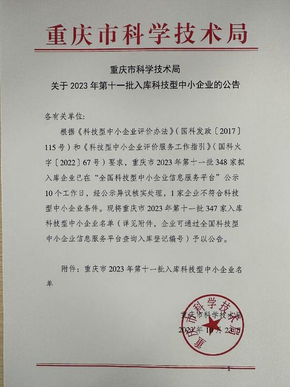 重慶市2023年第11批入庫科技型中小企業名單公告正文.jpg PICTURE