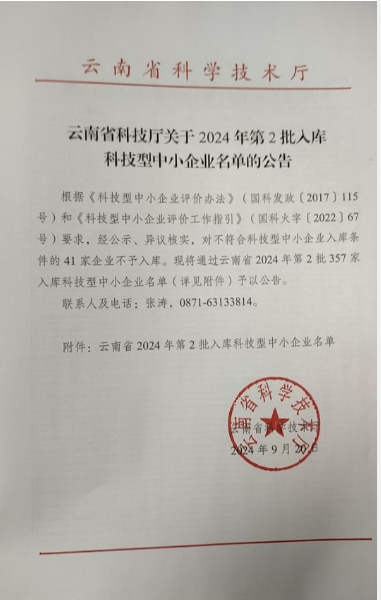 云南省2024年第2批入庫科技型中小企業名單公告正文.jpg PICTURE