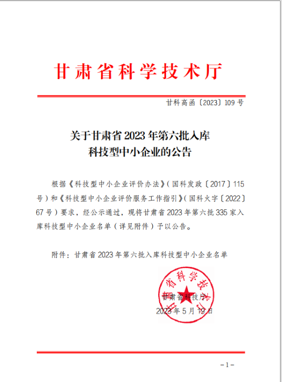 甘肅省2023年第6批入庫科技型中小企業(yè)名單公告