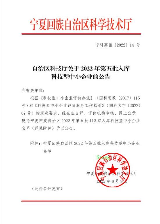 寧夏回族自治區2022年第5批入庫科技型中小企業名單公告正文.jpg PICTURE