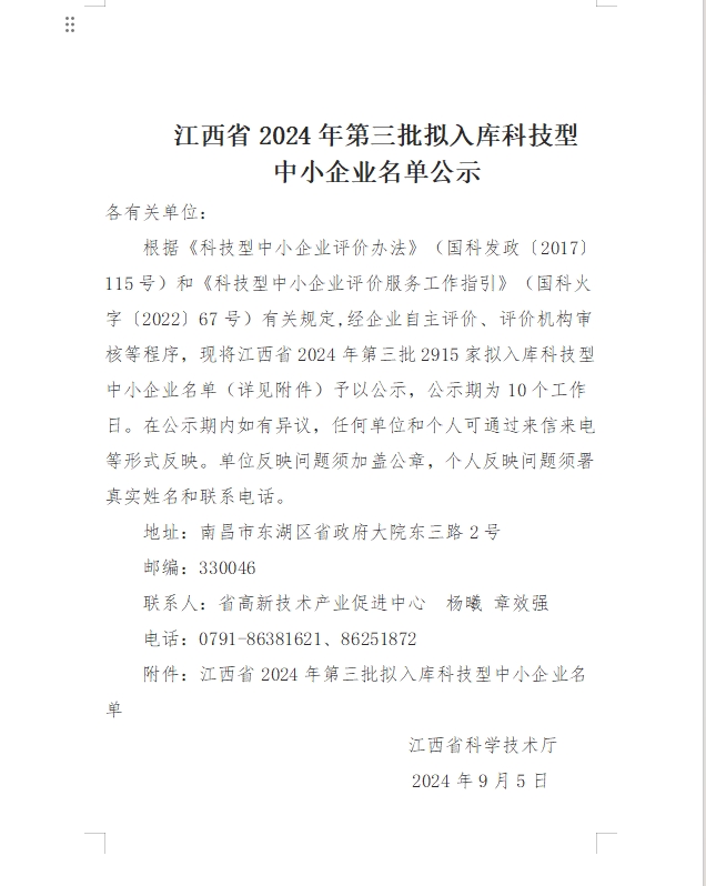 江西省2024年第3批擬入庫(kù)科技型中小企業(yè)名單公示正文.jpg PICTURE