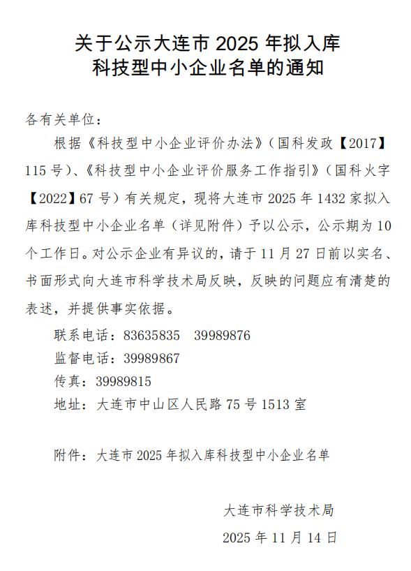 大連市2025年第1批擬入庫科技型中小企業名單公示正文.jpg PICTURE