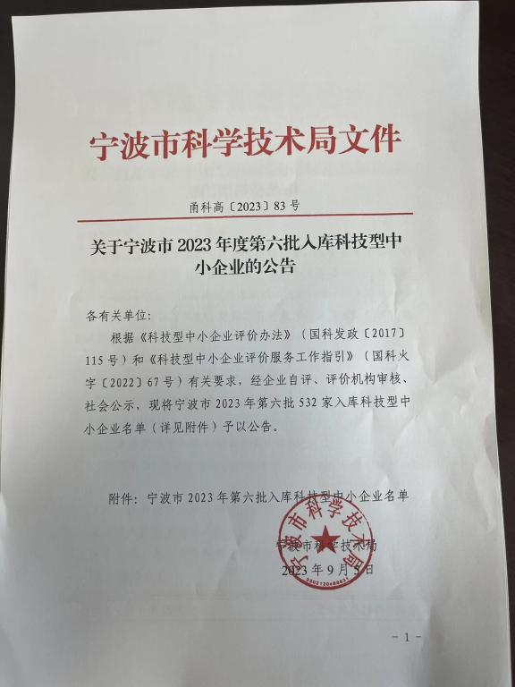 寧波市2023年第6批入庫科技型中小企業名單公告正文.jpg PICTURE