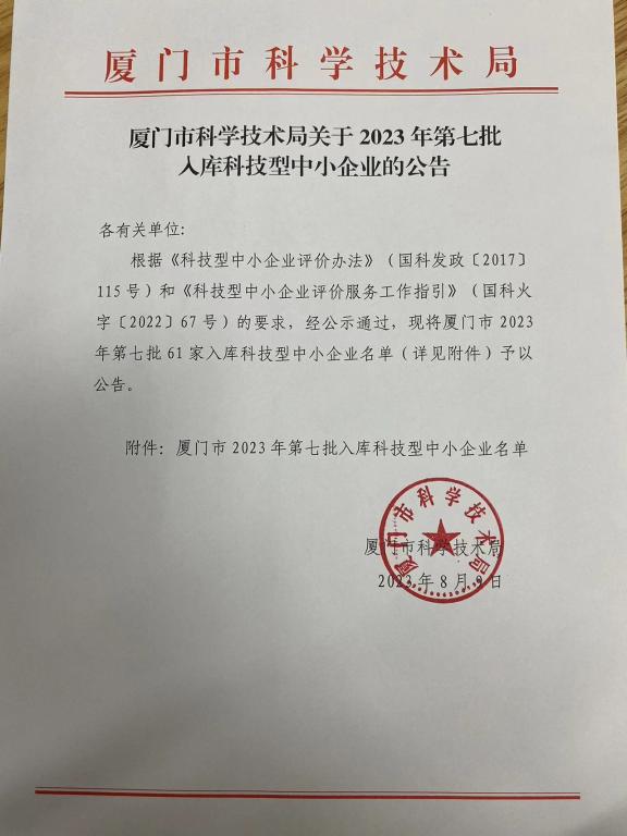 廈門市2023年第7批入庫科技型中小企業名單公告正文.jpg PICTURE